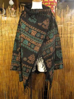 渋いパッチワークのフード付きポンチョになります