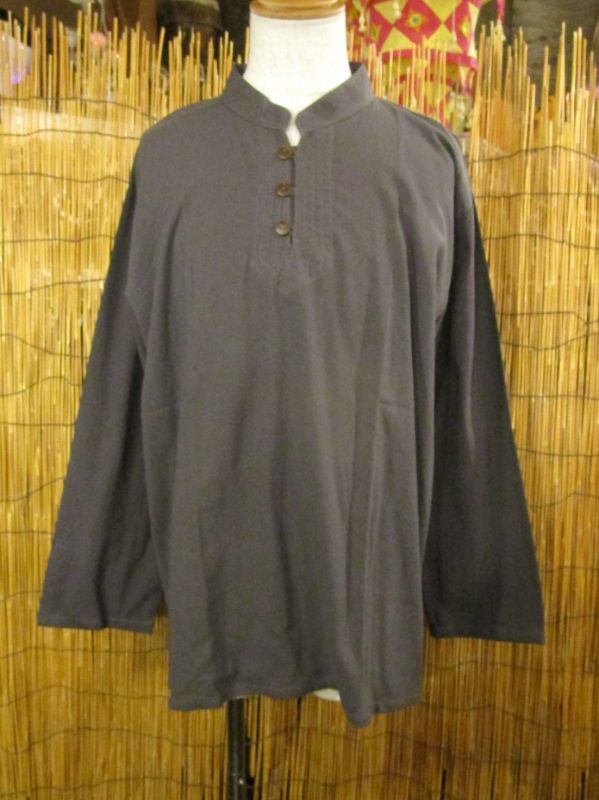 無地*コットン素材*マオカラー*三つボタン*ロングスリーブ*プルオーバー*XL[1]
