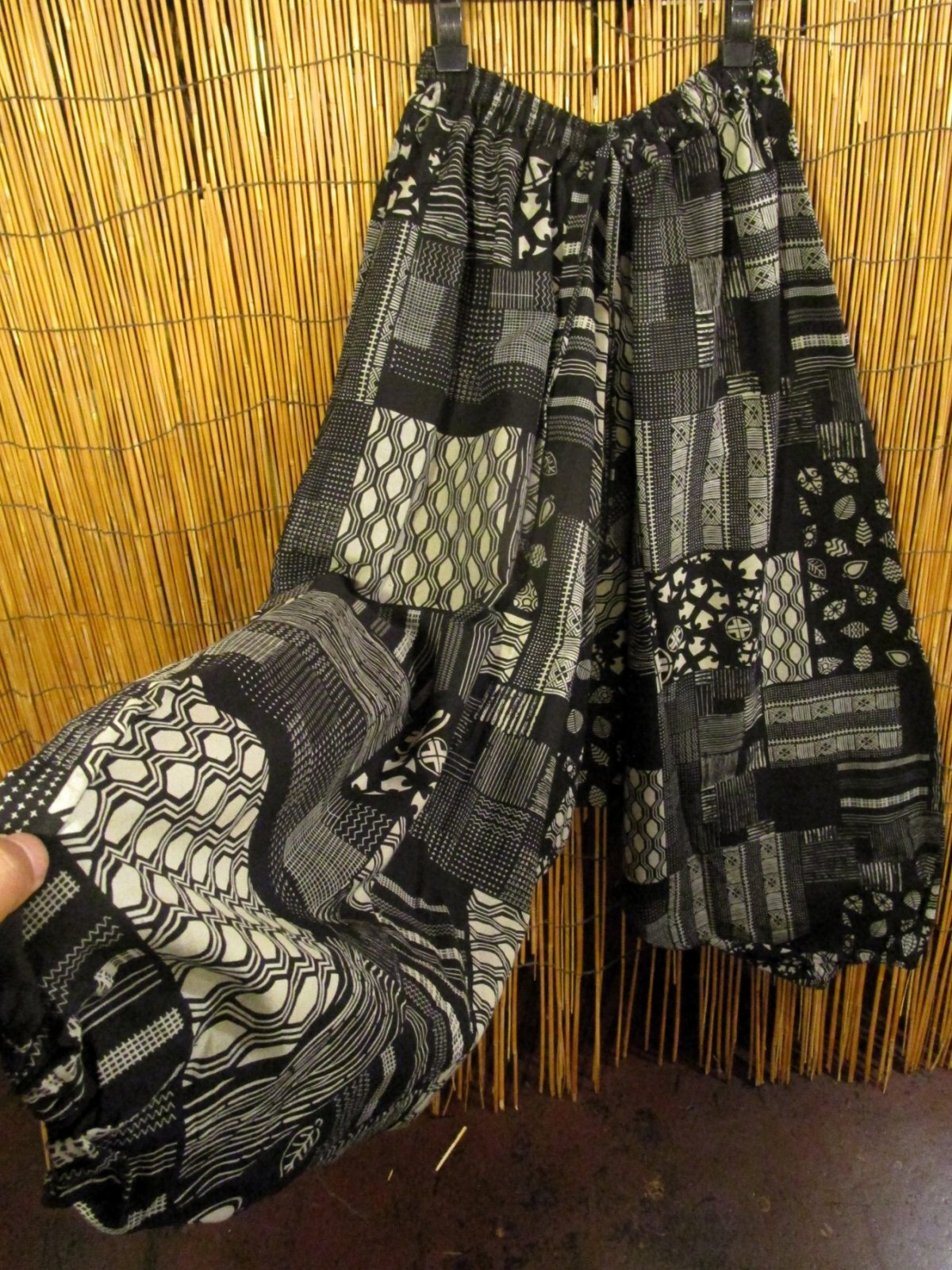黒和風プリントのふんわりしたサルエルパンツになります