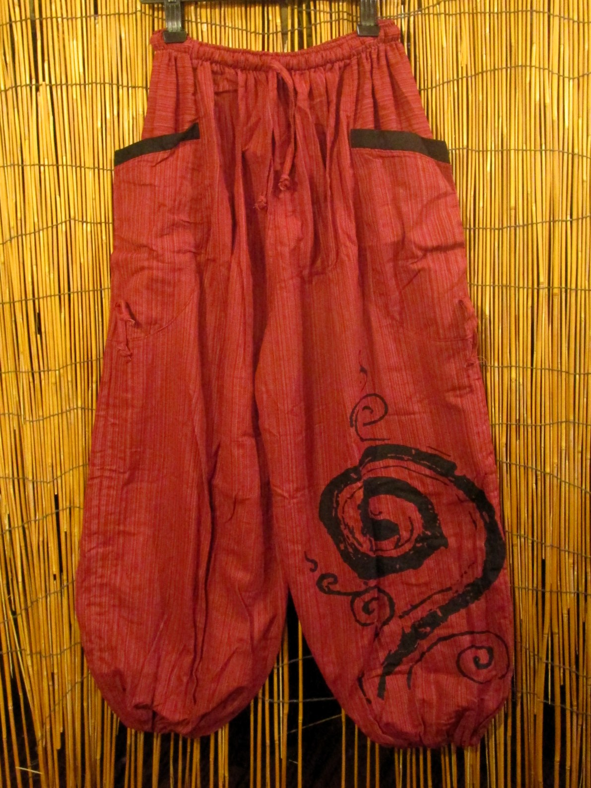 裾に渦巻きプリントのアラジンパンツになります