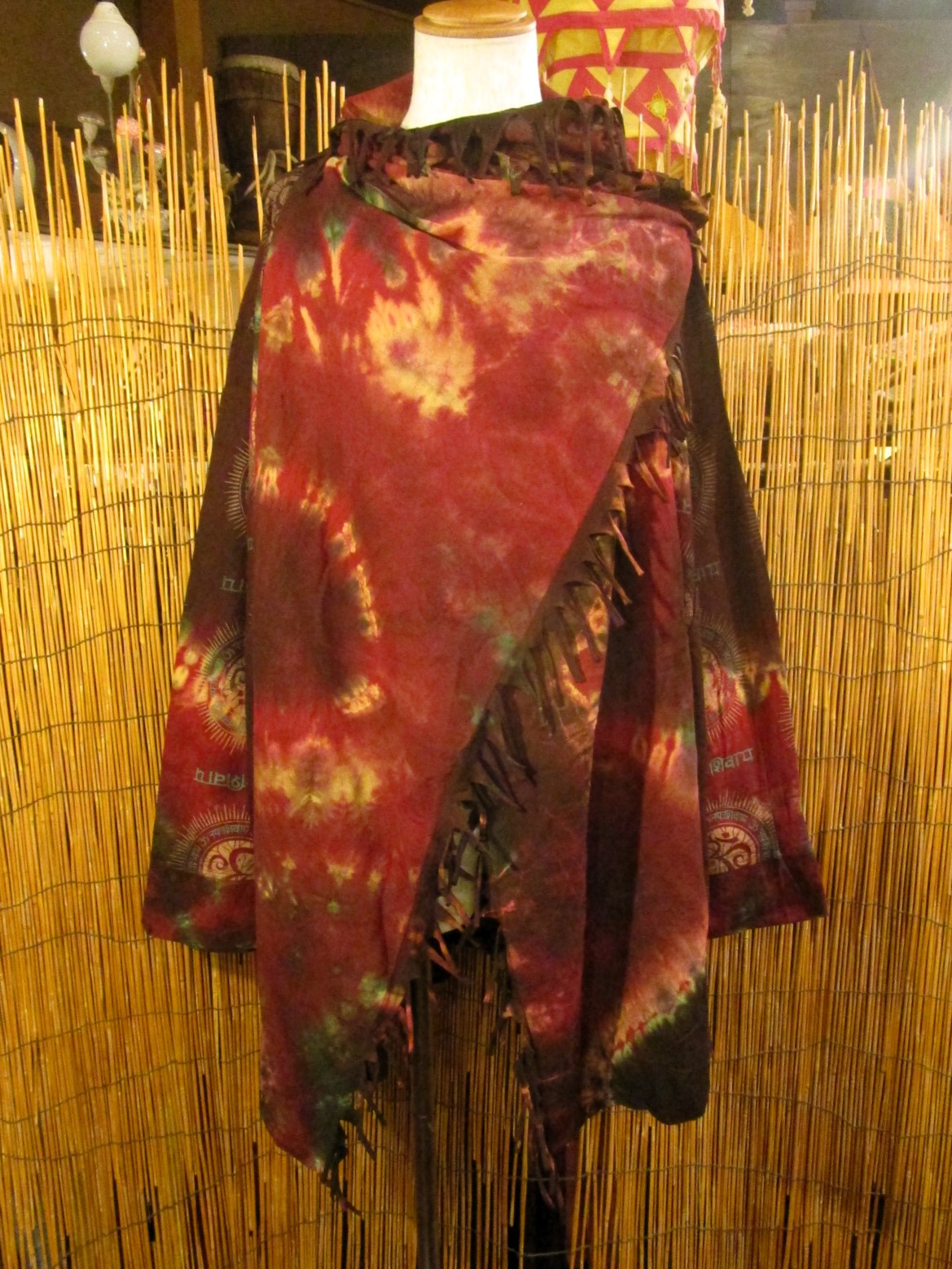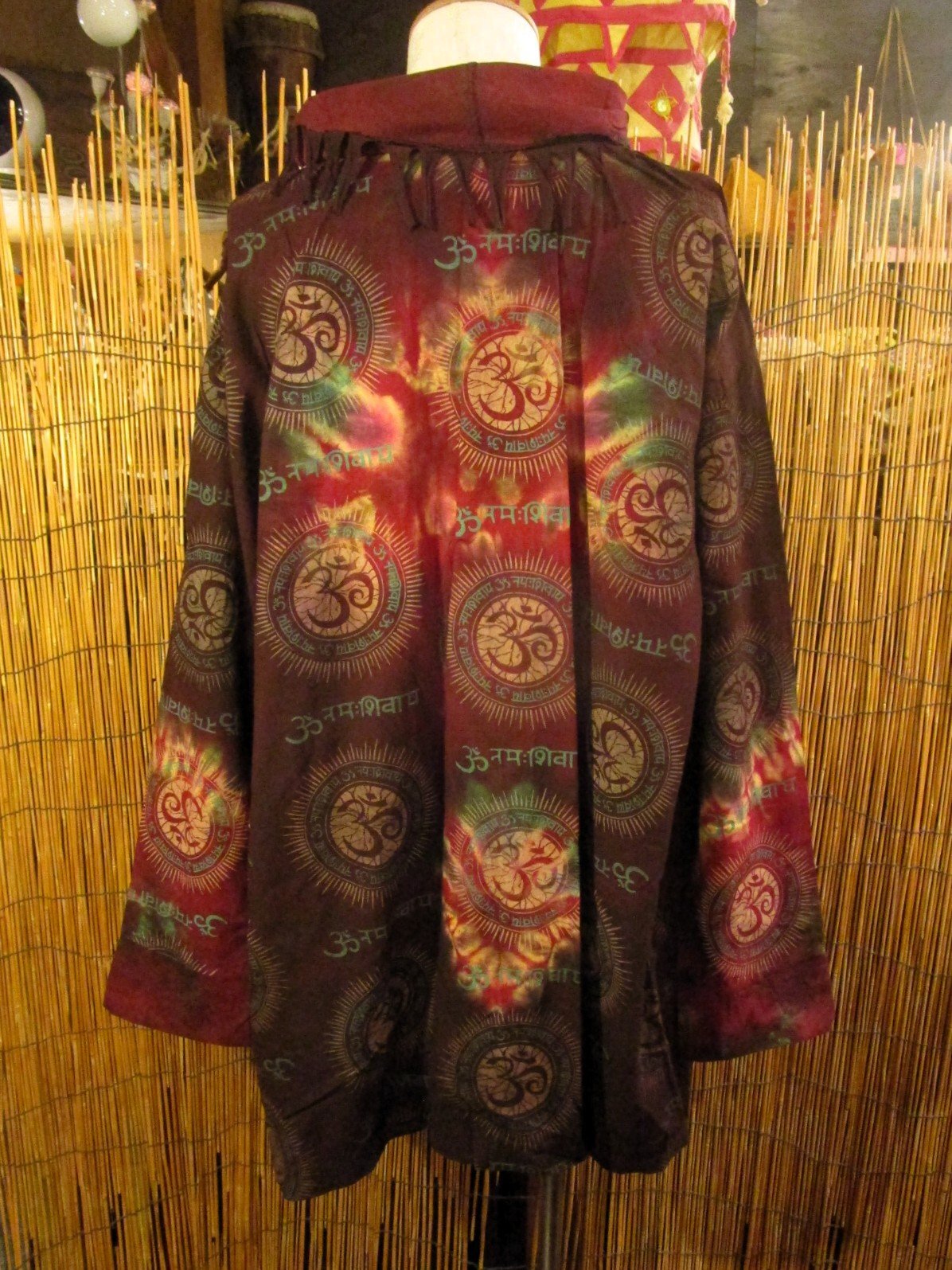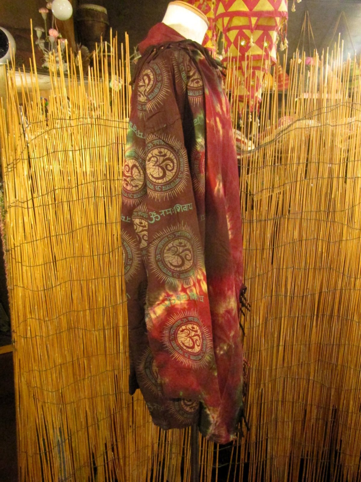 民族調プリントにタイダイ染めされた旅人風スプリングコートになります