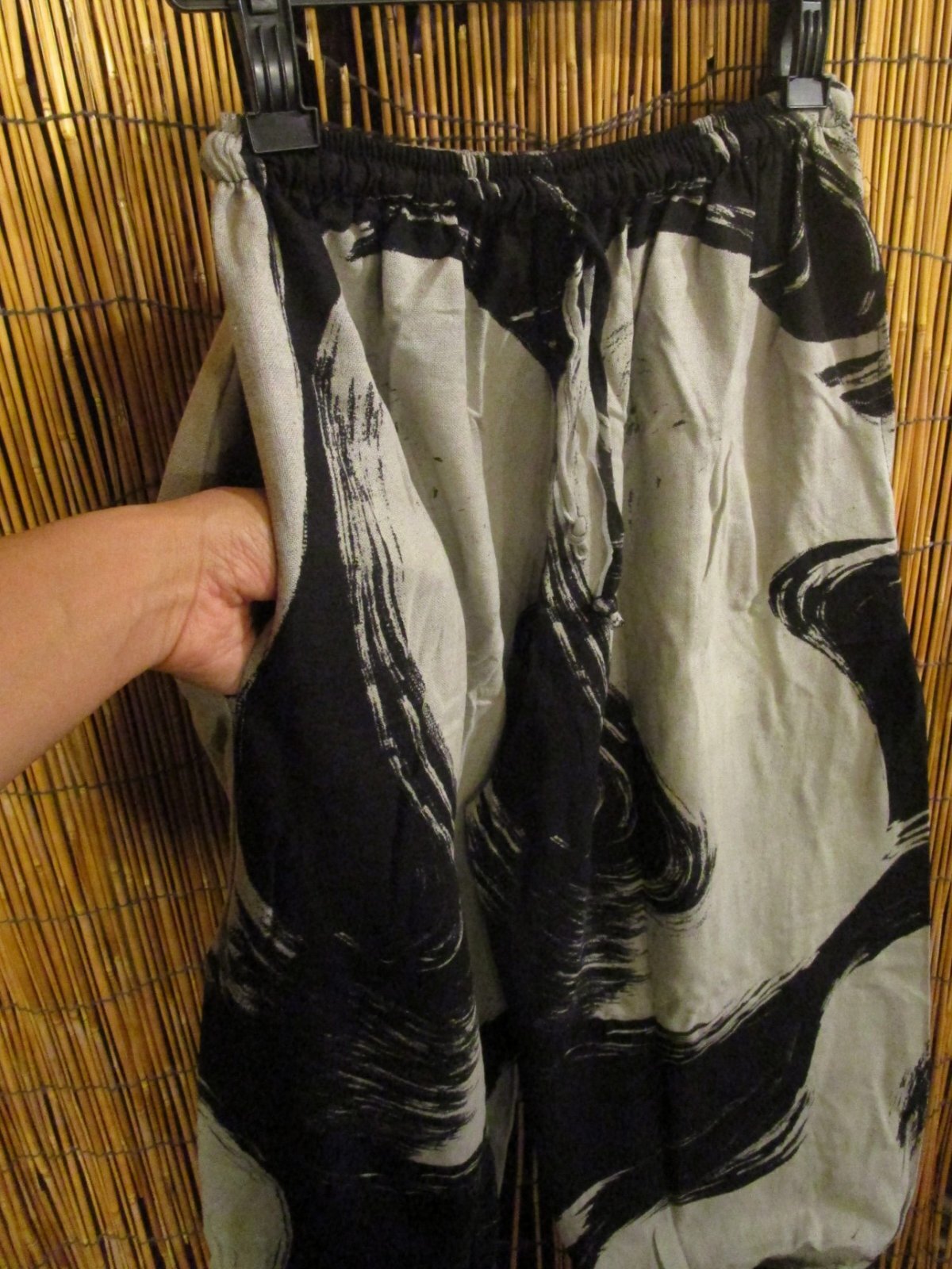 ふんわりシルエットで和風プリントのアラジンパンツになります