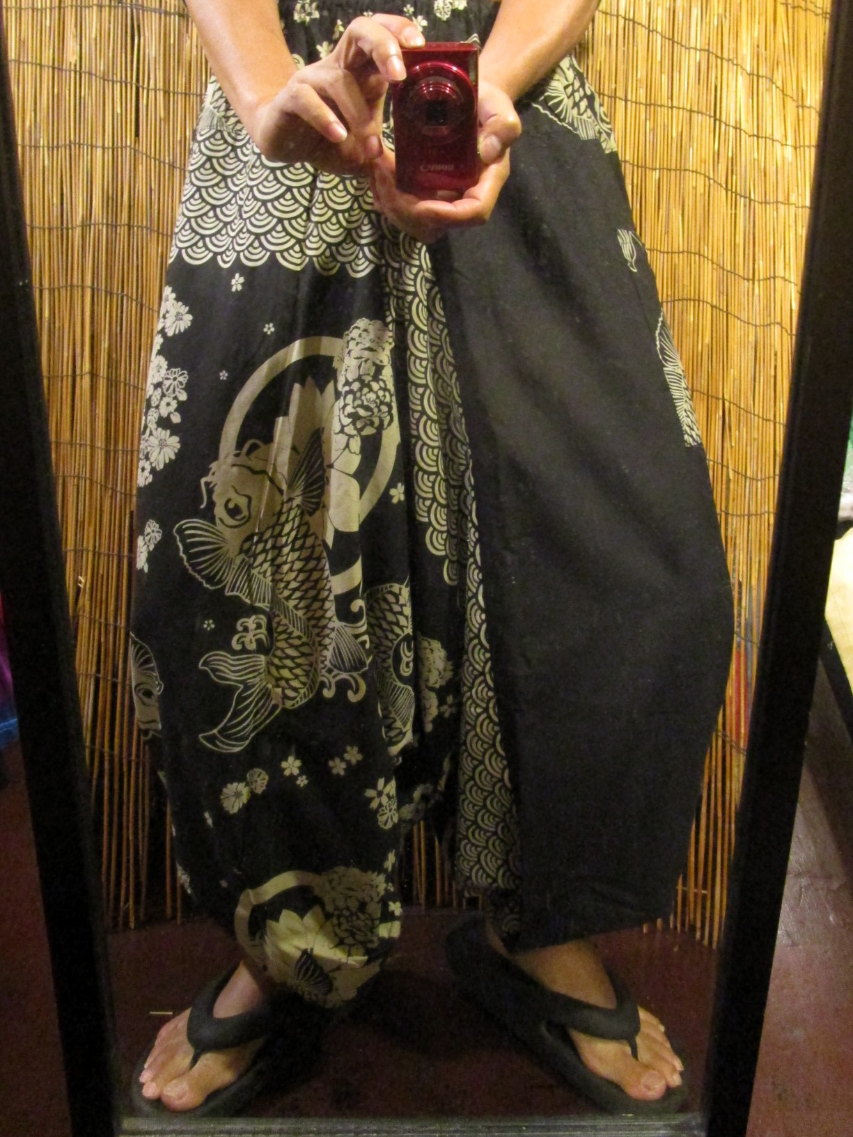 黒色+和風プリントのふんわりしたサルエルパンツになります