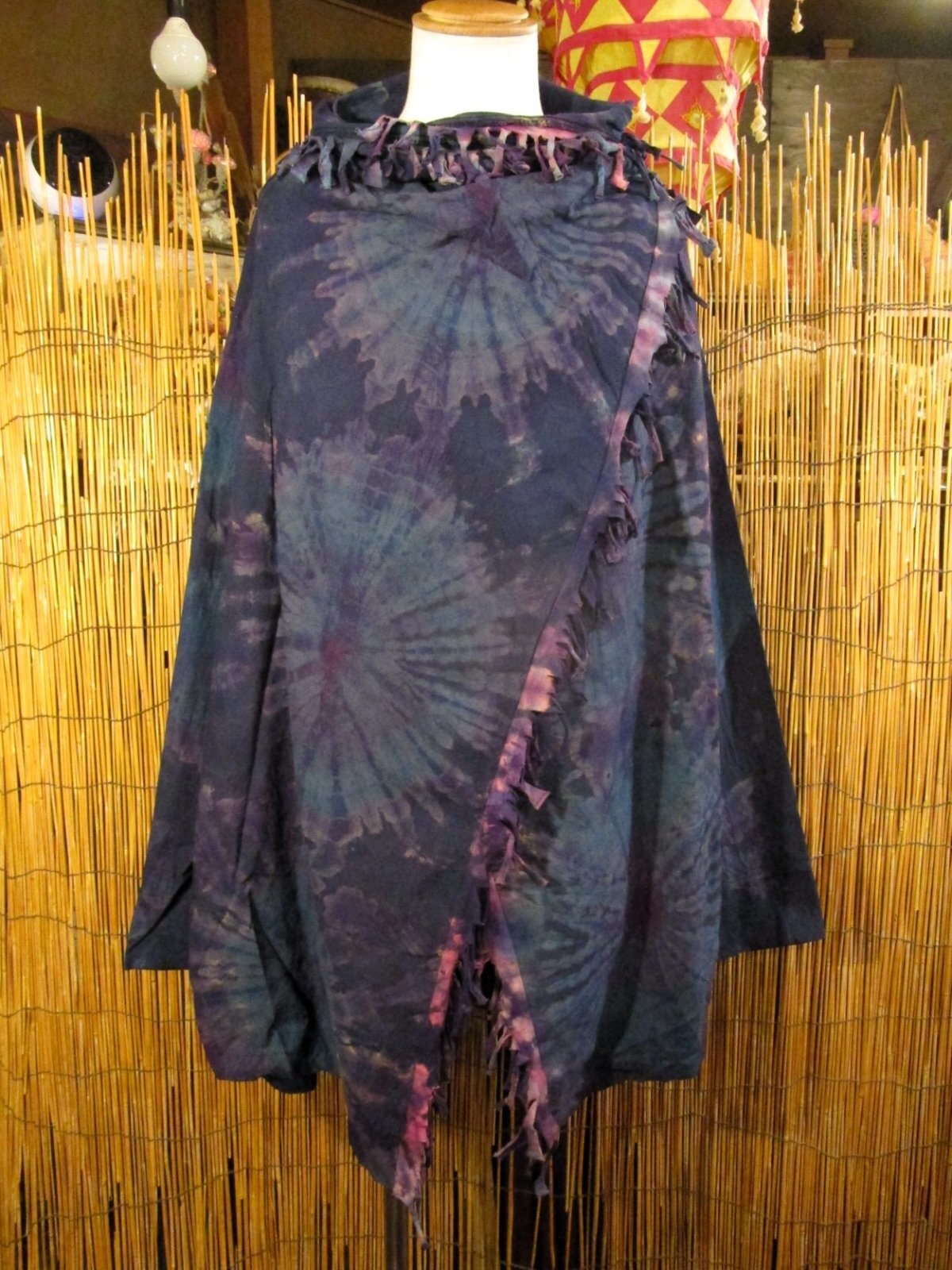 タイダイ染め*コットン素材*ゆったりサイズ*2WAY*フリンジ*スナフキン*旅人風コート[13]