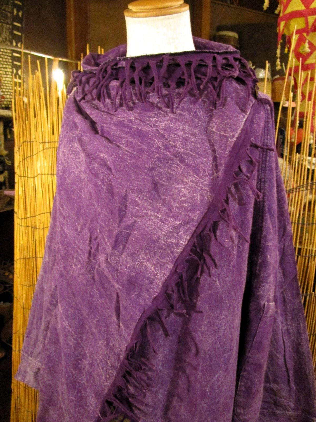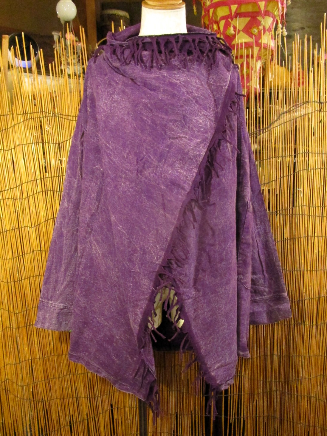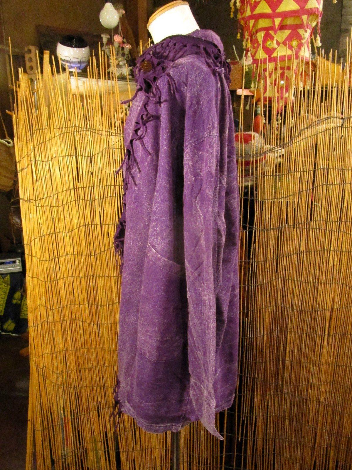 ホーム*旅人風コートストーンウォッシュ加工*コットン素材*ゆったりサイズ*2WAY*フリンジ*スナフキン*旅人風コート