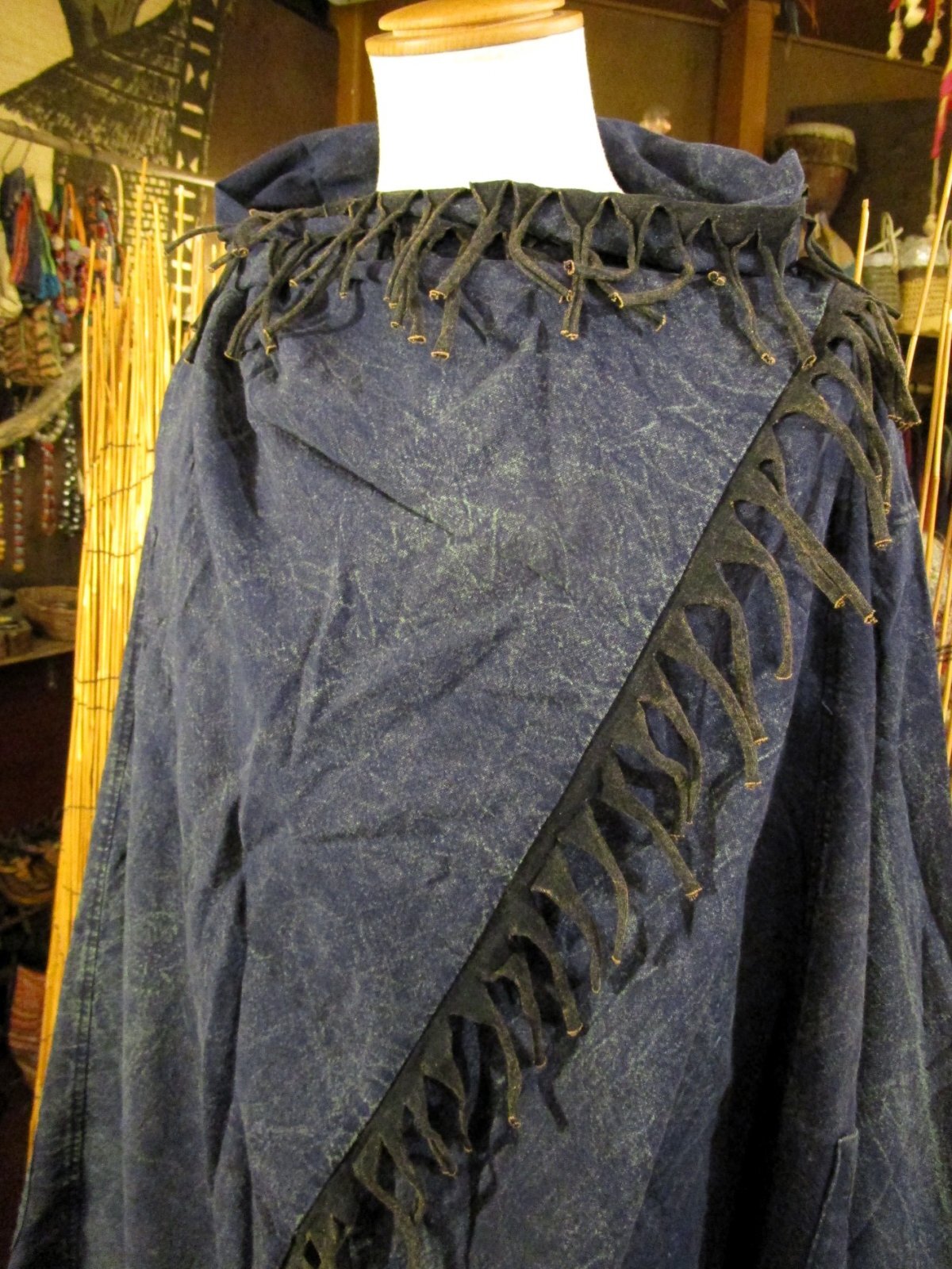 ホーム*旅人風コートストーンウォッシュ加工*コットン素材*ゆったりサイズ*2WAY*フリンジ*スナフキン*旅人風コート