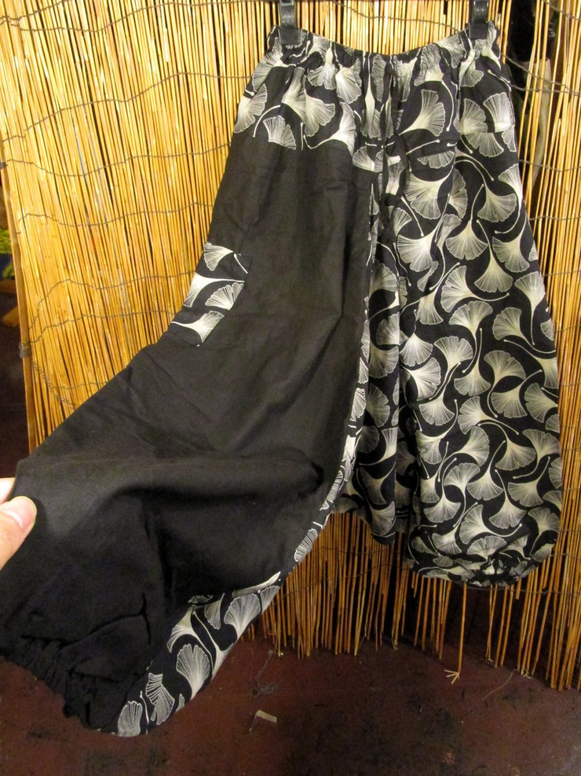 黒色+和風プリント*切り替え*コットン素材*ふんわり*サルエルパンツ[2]