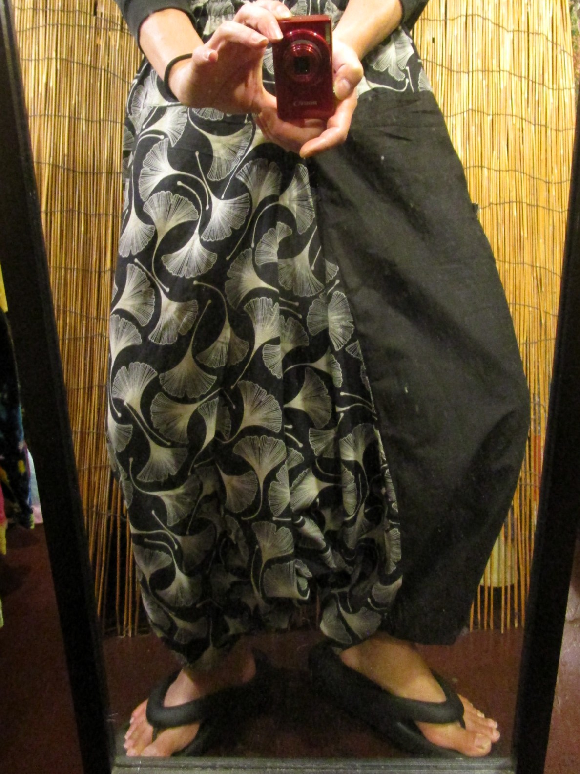 黒色+和風プリントのふんわりしたサルエルパンツになります