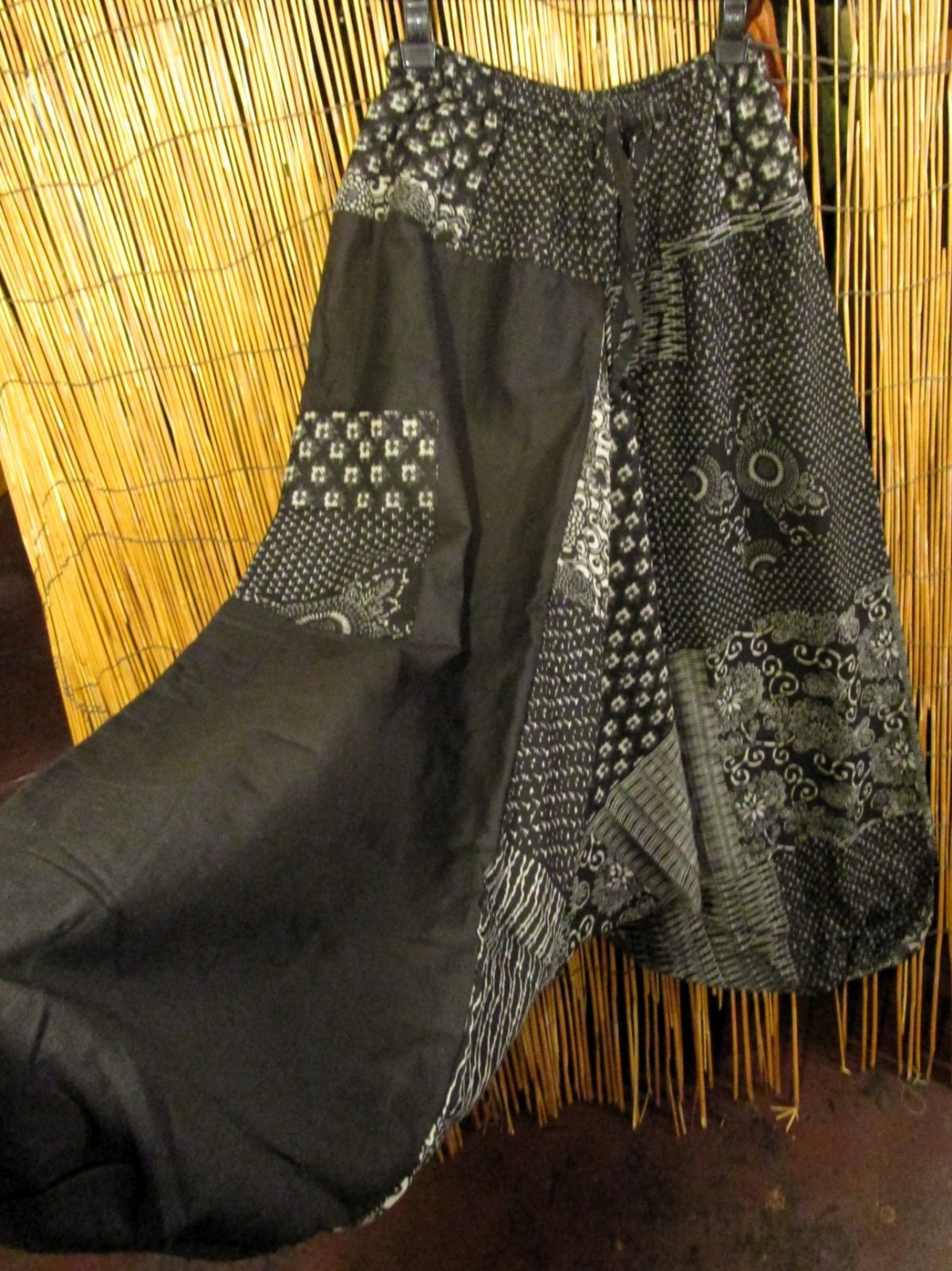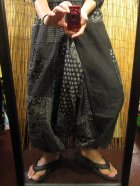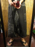 ホーム | *サルエルパンツ > コットン生地黒色+和風プリント*切り替え*コットン素材*ふんわり*サルエルパンツ