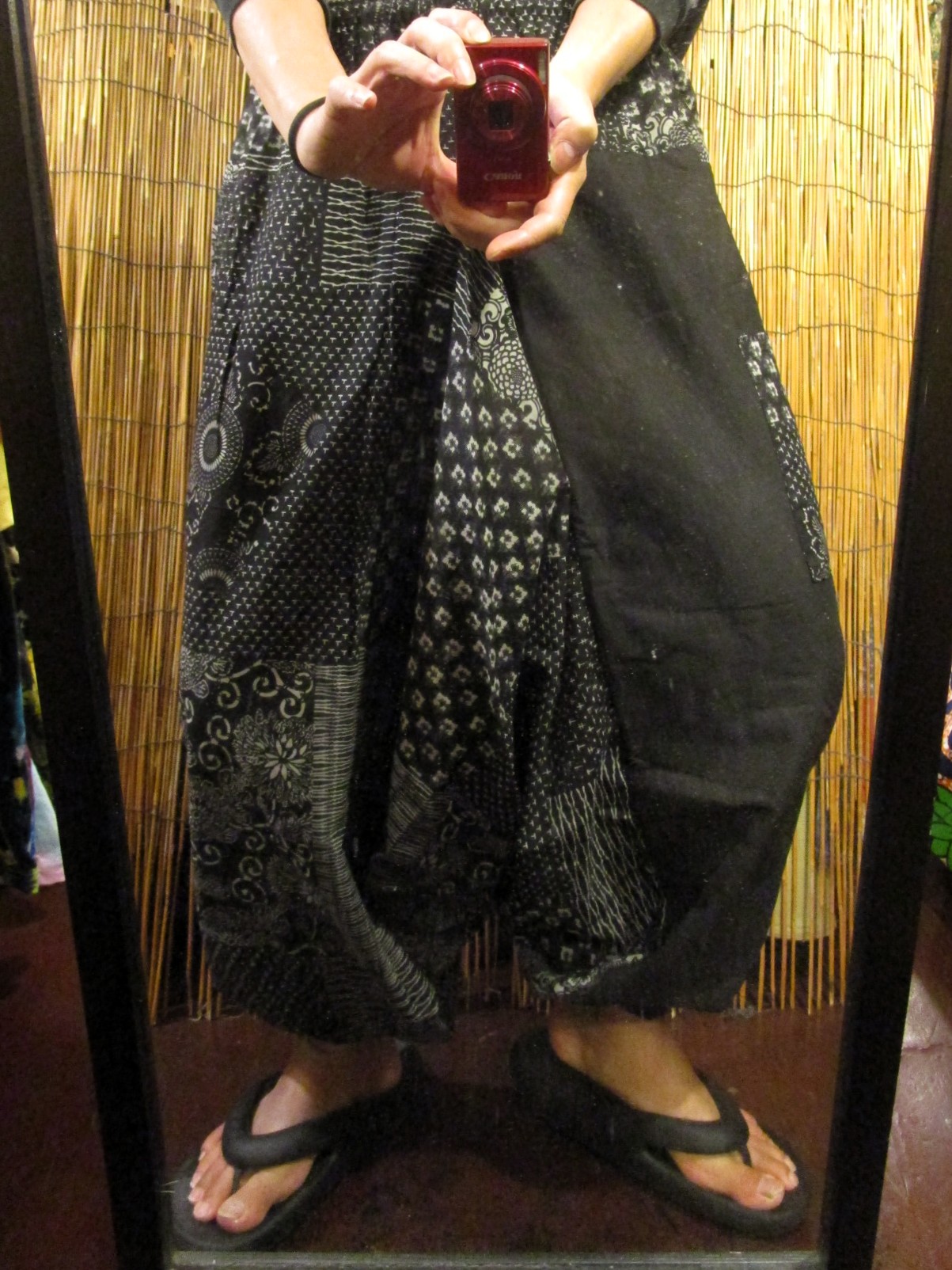 黒色+和風プリントのふんわりしたサルエルパンツになります