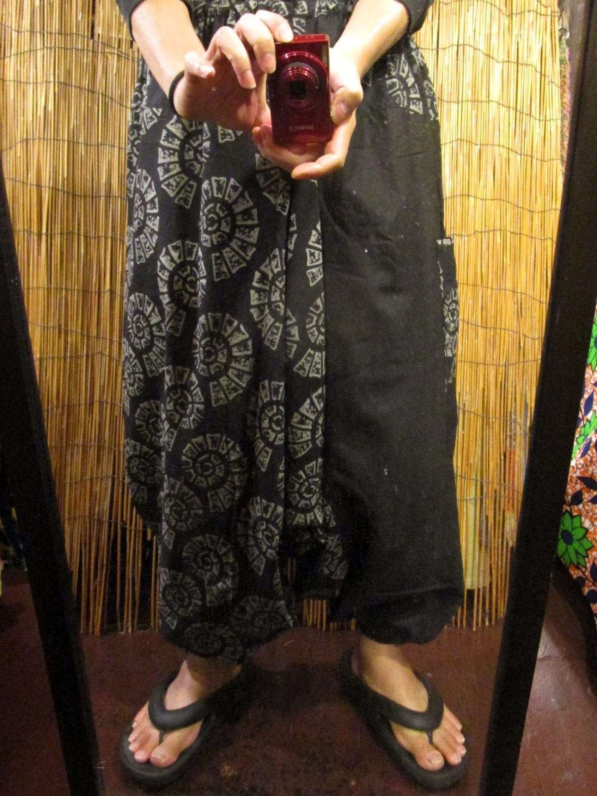 黒色+和風プリントのふんわりしたサルエルパンツになります