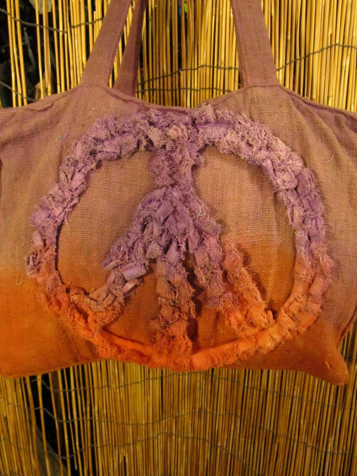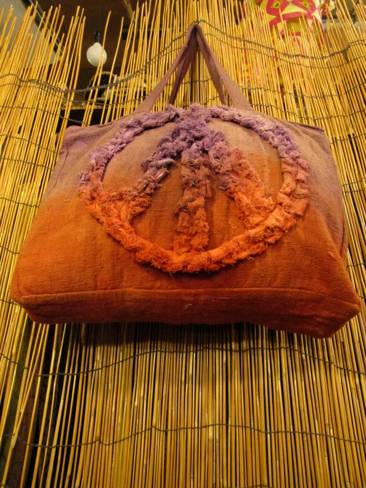 ホーム | *鞄 > 手提げバッグ手染め*粗織りコットン素材*ピースマーク*ボストンバッグ