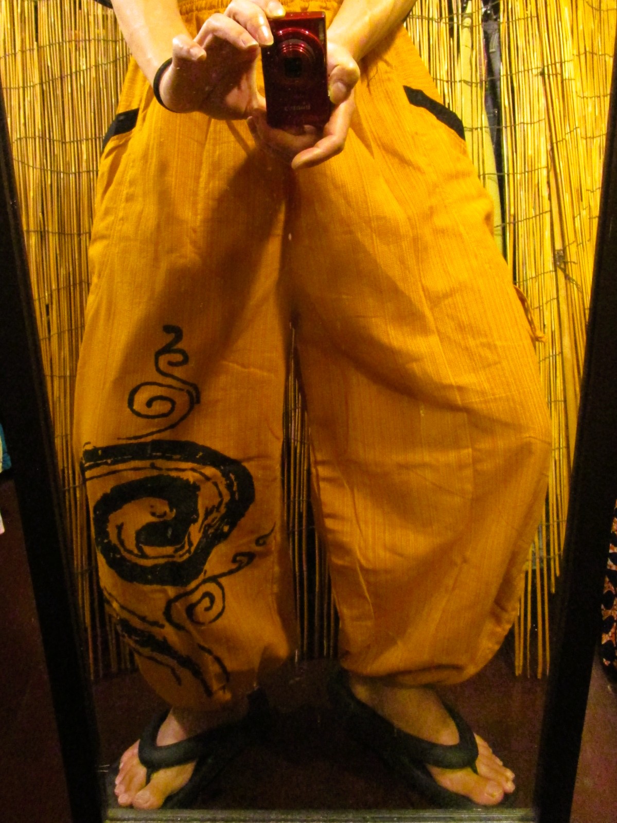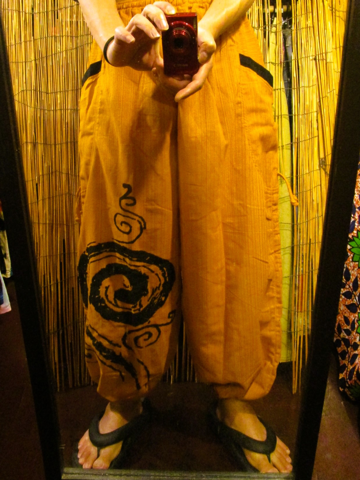 裾に渦巻きプリントのアラジンパンツになります