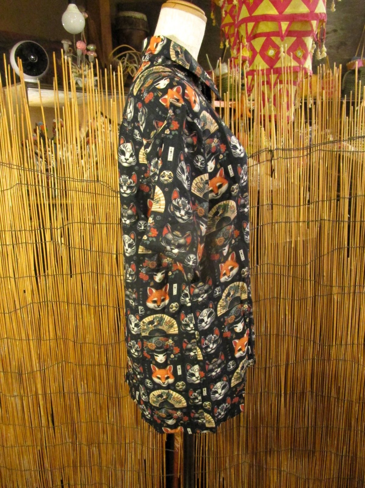 和風プリント*コットン&リネン混紡*個性的*半袖*アロハシャツ *M[4]