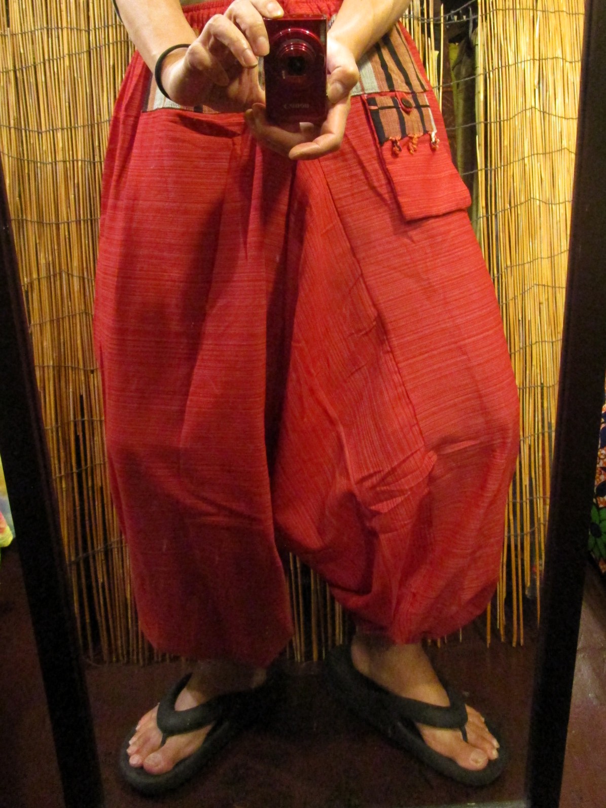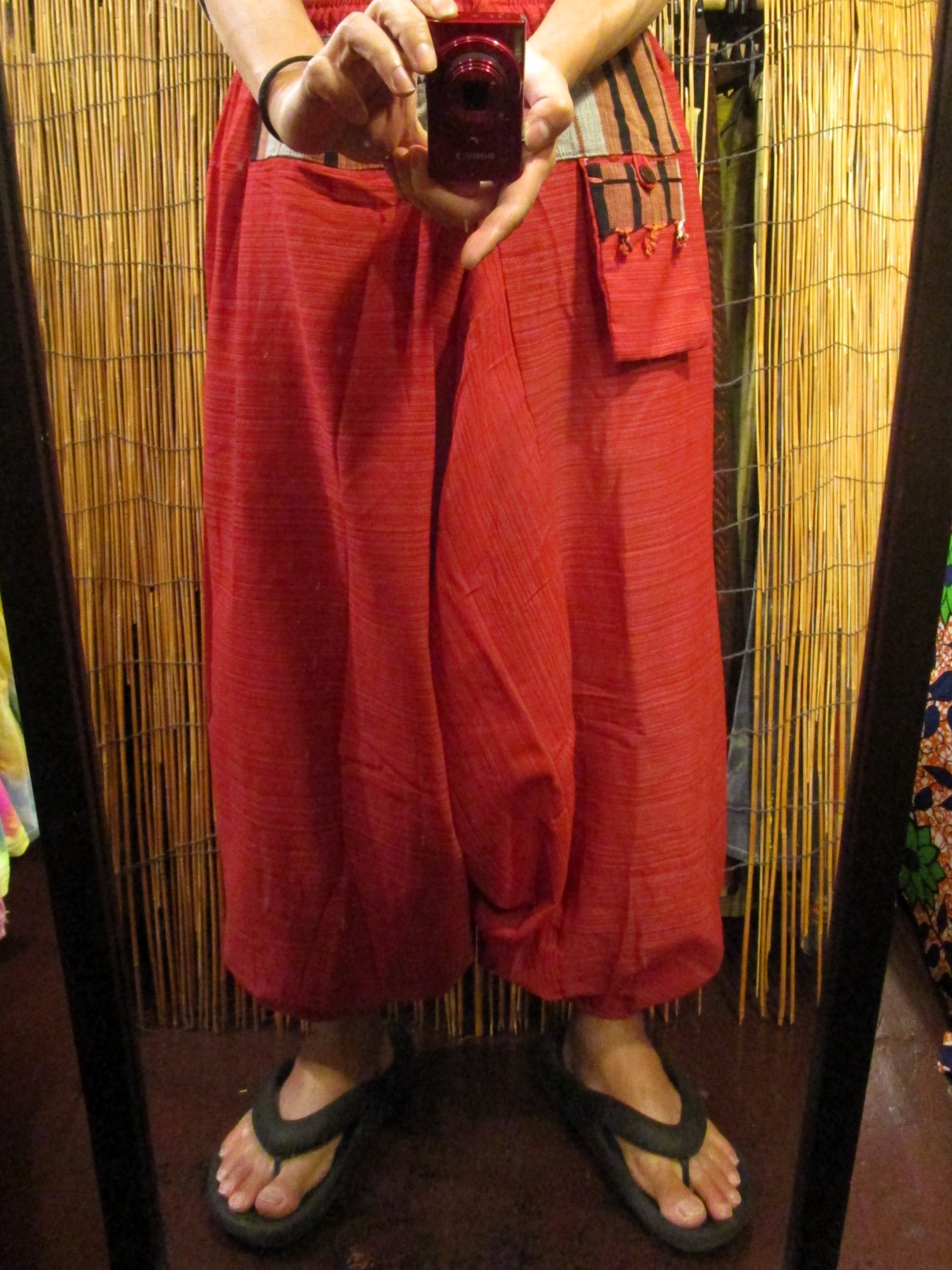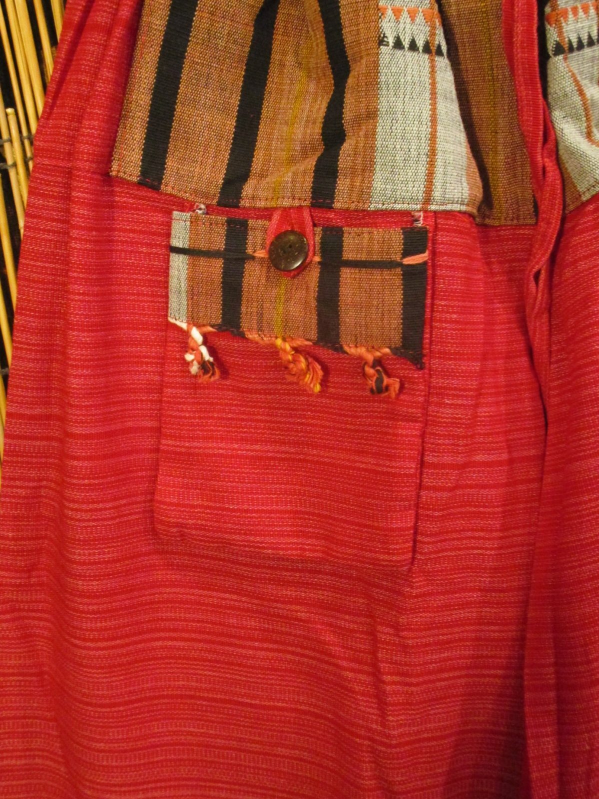 ウエスト部分と小さなポケットにナガ族生地